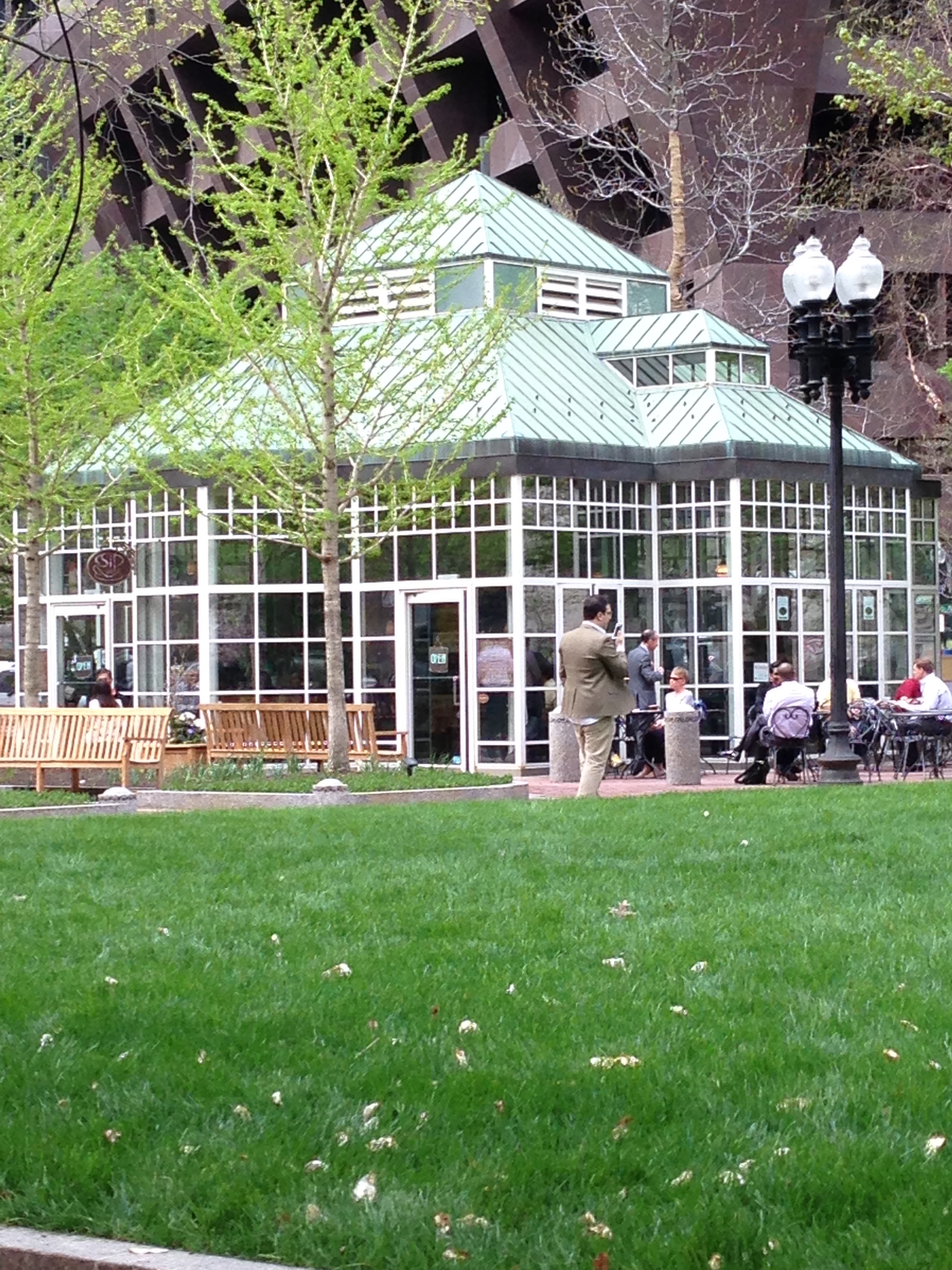 Sip Cafe is a tiny spot located in Post Office Square in Downtown Boston. At first I was taken aback by the small location, but it made the shop cozier, juxtaposing the large financial buildings nearby. In the summer Sip Cafe has great outdoor seating, but there is also the park with beautiful flowers and a fountain to sit by as well. The location is very peaceful despite being in the middle of the city. The service was quick, and the espresso was delicious. The espresso aftertaste was sort of chocolatey, but not strong enough to overpower the initial suave taste of the drink. They serve the local George Howell Coffee from Newton, MA. The feel is very different from other independent coffee shops because of the many business people relaxing there during their breaks. Overall, this gem is a must-try for coffee lovers in the area.