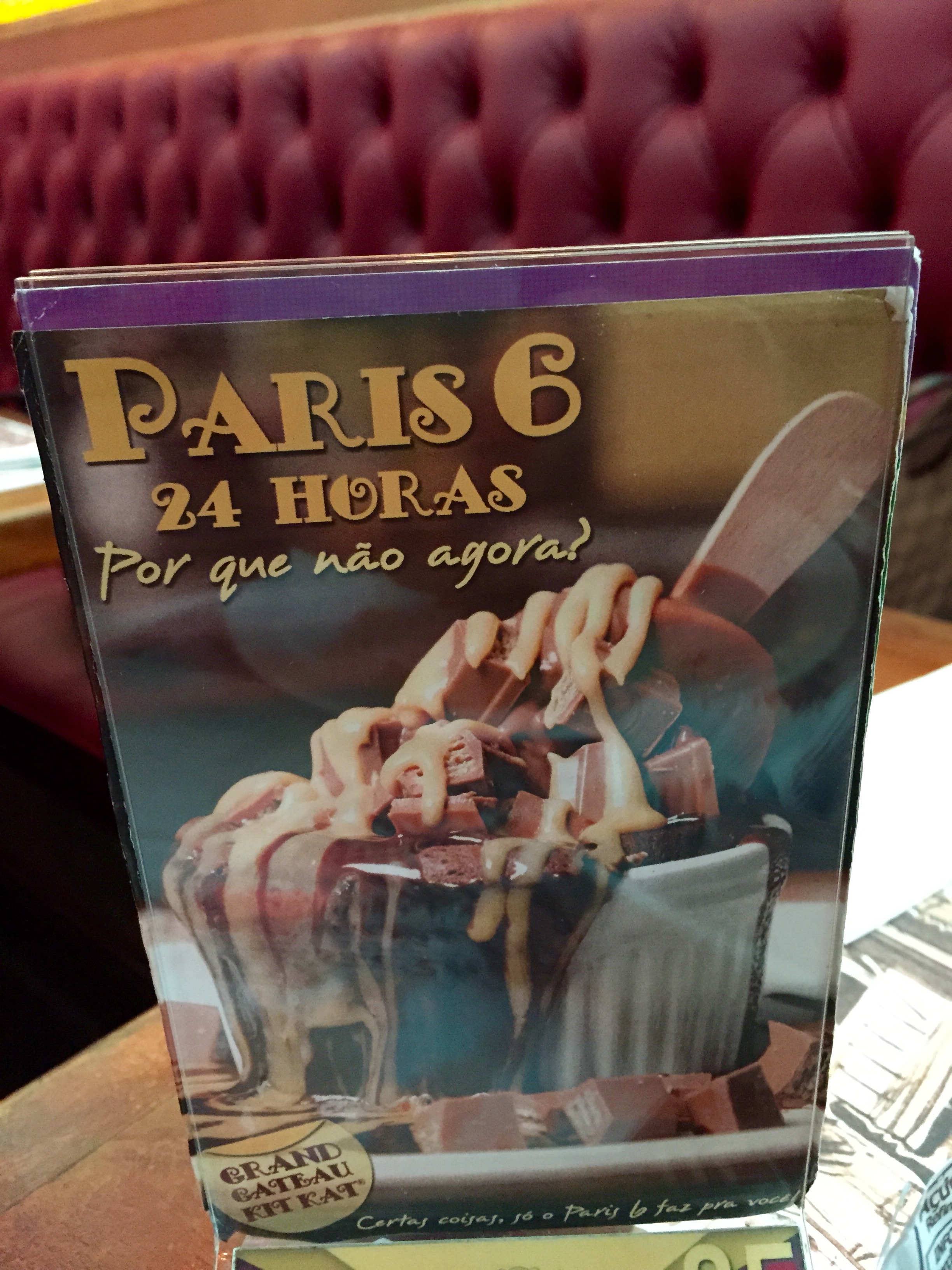 Yesterday I learned why Paris 6 is the hot spot to be for brunch on the weekends in São Paulo. The brunch buffet options were delicious and varied from pastries, to fruit, to juice, to eggs, to crepes. Before I went to grab my coffee, my friend said to me, “You are not going to be able to drink coffee again in the U.S. after trying this coffee.” Although I do not completely agree with that statement, I will say that this coffee changed me (I know I’m a bit dramatic). This cafe com leite had a stronger coffee taste than others I have had so far, but also was a bit sweeter (I do not add sugar to my coffee). It was a flavor I had never tasted before, but it was marvelous. I predict I will be making a trip back here soon.