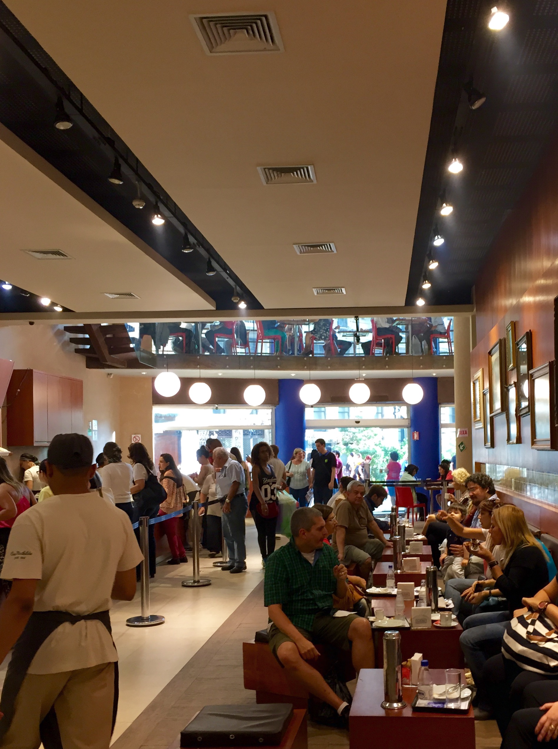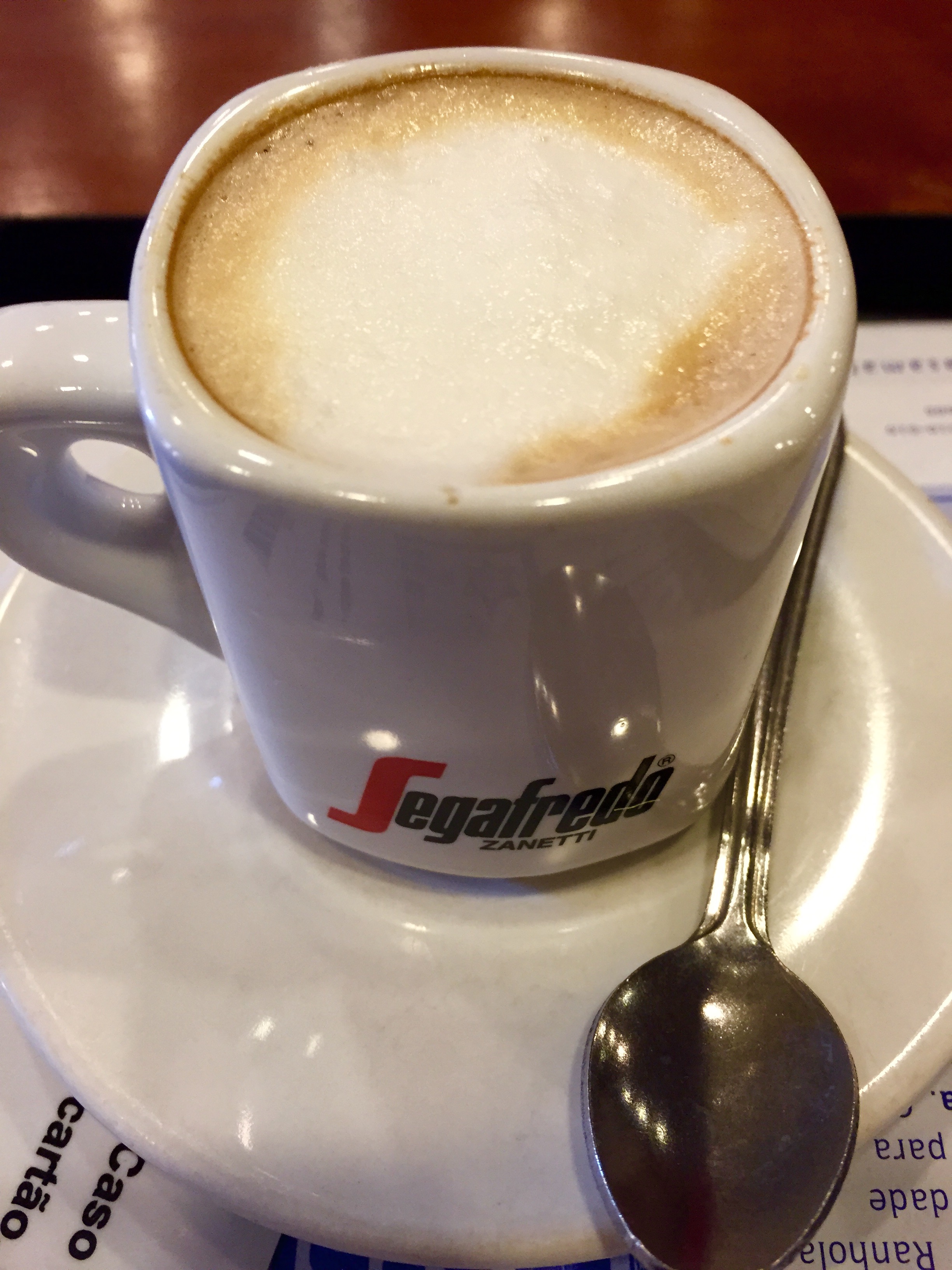 Casa Mathilde has to be one of the most hectic bakery/cafés I have ever been to. This place was so full of people, the second I walked in I started sweating. Apparently, Casa Mathilde is a super popular and famous Portuguese bakery in São Paulo. I only found out about it through another coffee fanatic I met in São Paulo (see Padoca do Mani). I really only went in there for a cup of coffee, but after I saw the huge wall of baked goods I figured I would get something to eat as will. To give you an idea of the size of this place, think about the size of your average coffee shop and multiply it by six. The bakery has three floors, and still it was hard to find a spot to sit with all of the people there! I ordered cafe com leite, but did not think to specify the size I wanted. I ended up getting a small which I was okay with at first. Then I took the first sip and all I could think was “wow”. Really this had to have been the best cafe com leite I have had here. The flavor was suave and rich with a slightly sweet aftertaste and was not too strong. After that first sip, that’s when I was disappointed I got a small. Along with the great coffee, there was a great view. The bakery had tall buildings in which you could see the beautiful architecture of the buildings nearby, such as the Edificio Martinelli and the Bank of Brazil. This bakery is a great place to meet up with friends and talk but is definitely too loud and to get any work done.