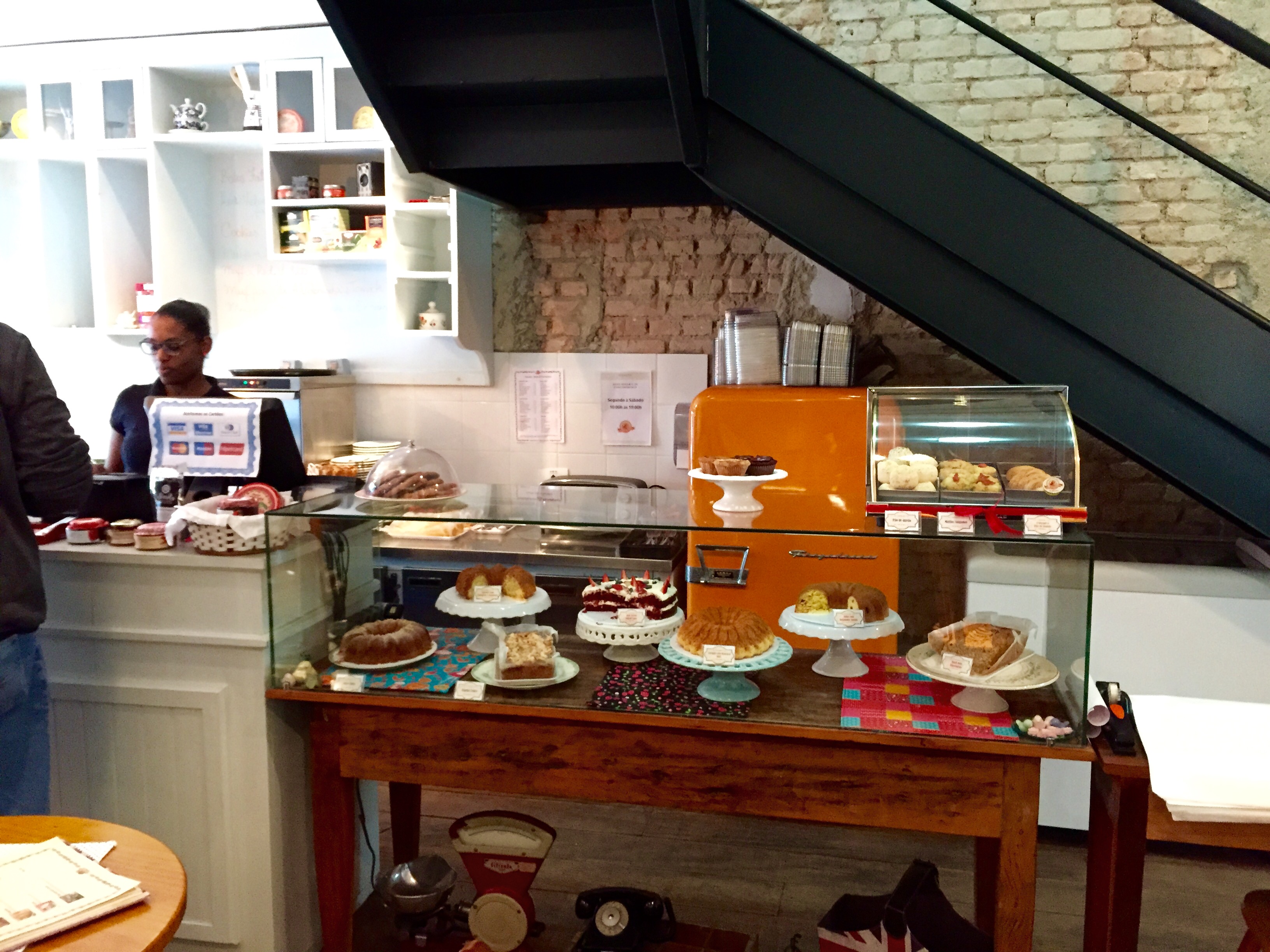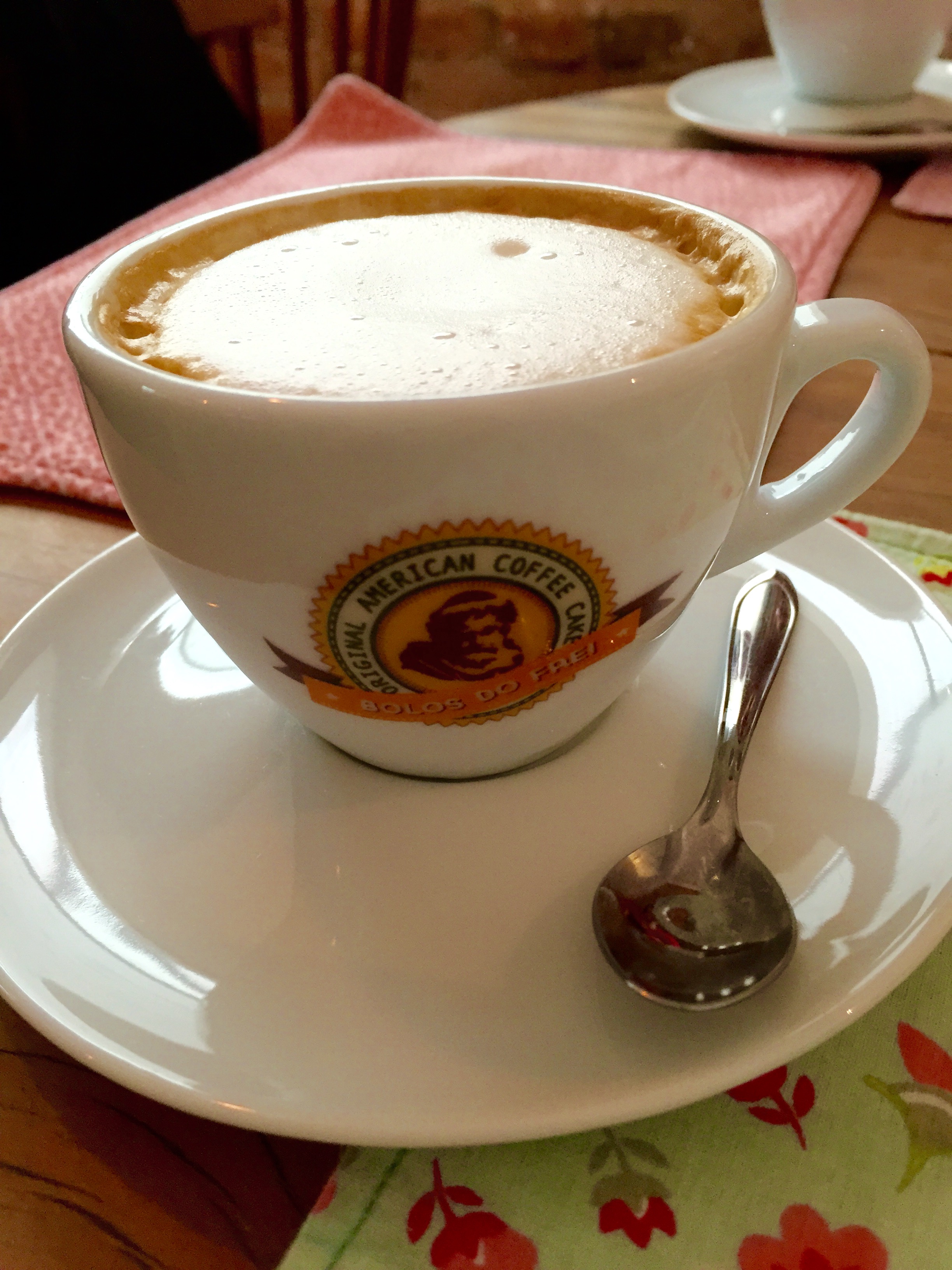 Normally when in a foreign country I wouldn’t go to a place with “American” included in the name, but this restaurant was recommended to me by a friend. Really there was not anything very American about this place at all! The cakes were made with Brazilian fruits and the coffee was also Brazilian. The location was cute and cozy and had antique decorations. I ordered an espresso with milk and it was absolutely wonderful. It had a strong flavor that was well balanced by the milk. The foam at the top was very interesting because it was rather thick and stuck together making it sort of hard to drink the coffee, but I really enjoyed the texture it provided to my drink. To go with my coffee, I also ordered multigrain pão de queijo. This was the best pão de queijo I have had my entire trip because it was warm and had a nice seedy texture. I also tried some cake and it melted in my mouth. It was the perfect compliment to the coffee. I am not really a huge fan of cake!